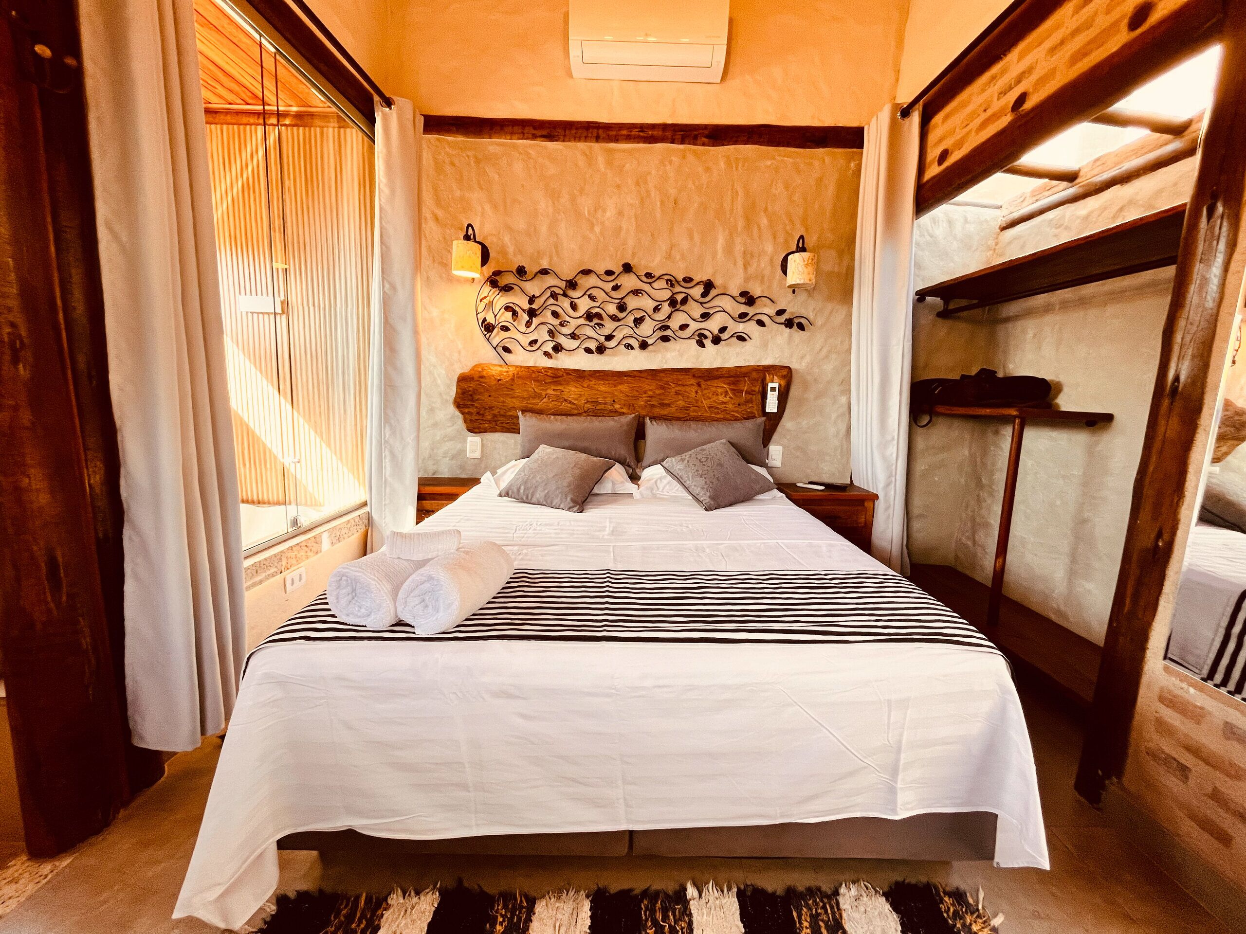 A Suíte Luxo combina conforto e charme em um ambiente acolhedor. Equipada com ar-condicionado, TV de LED, Wi-Fi, frigobar e cama Queen size, esta suíte é perfeita para uma estadia relaxante. A decoração aconchegante garantem uma experiência agradável e reconfortante.